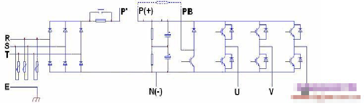 對于變頻器修理,僅了解以上基本電路還遠遠不夠的,還須深刻了解以下主要電路。主回路主要由整流電路、限流電路、濾波電路、制動電路、逆變電路和檢測取樣電路部分組成。圖2.1是它的結(jié)構(gòu)圖。