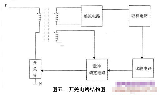 直流高壓P端加到高頻脈沖變壓器初級端,開關調(diào)整管串接脈沖變壓器另一個初級端后,再接到直流高壓N端。開關管周期性地導通、截止,使初級直流電壓換成矩形波。由脈沖變壓器耦合到次級,再經(jīng)整流濾波后,獲得相應的直流輸出電壓。它又對輸出電壓取樣比較,去控制脈沖調(diào)寬電路,以改變脈沖寬度的方式,使輸出電壓穩(wěn)定。