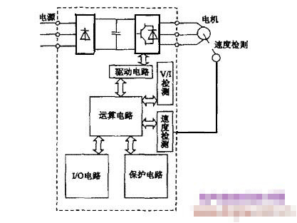 在圖 1點劃線內(nèi),無速度檢測電路為開環(huán)控制。在控制電路增加了速度檢測電路,即增加速度指令,可以對異步電動機的速度進行控制更精確的閉環(huán)控制。
