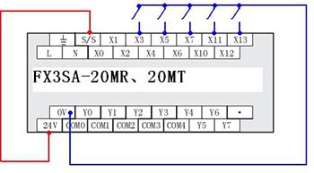 二、FX3SA  FX1S 的輸入接線(xiàn)不同