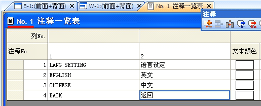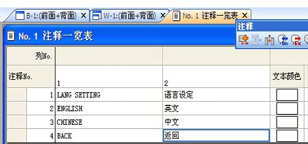 預(yù)覽列 NO:這里的預(yù)覽列為 1 時(shí),是預(yù)覽英文注釋;為 2 時(shí),是預(yù)覽中文注釋。注釋組 NO:因?yàn)橐婚_始只建了一個(gè)注釋組,所以為 1。