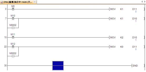 5、我們用 PLC 編程軟件寫一個(gè)程序,把上面創(chuàng)建畫面所用到的幾個(gè)軟元件和 PLC 的程序相關(guān)聯(lián)起來。