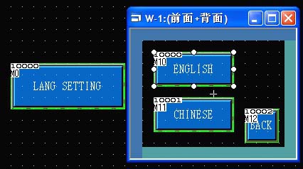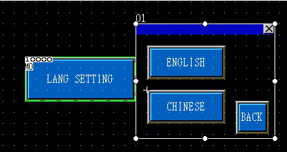 保存一下畫面,再次啟動(dòng)觸摸屏仿真。這時(shí)當(dāng)按下語言設(shè)定開關(guān)時(shí),對(duì)話框出現(xiàn)在了指定位置。