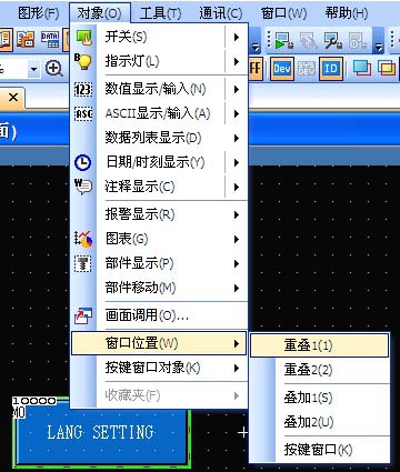 結(jié)束觸摸屏仿真,在菜單欄→對(duì)象→窗口位置點(diǎn)擊重疊 1。