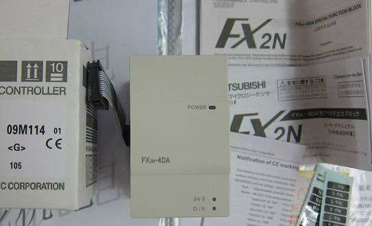 6、三菱FX2N-4DA有4個(gè)輸出通道。提供了12位高精度分辨率的數(shù)字輸入。轉(zhuǎn)換速度為2.1ms/4通道,使用的通道數(shù)變化不會(huì)改變轉(zhuǎn)換速度。輸出的形式可為電壓,也可為電流。其選擇取決于接線不同。電壓輸出時(shí),兩個(gè)模擬輸出通道輸出信號(hào)為0~10V DC,0~5V DC;電流輸出時(shí)為4~20mA DC。分辨率為2.5mV(0~10V DC)和4uA(4~20mA)。數(shù)字到模擬的轉(zhuǎn)換特性可進(jìn)行調(diào)整。本模塊需占用8個(gè)I/O點(diǎn)。適用于FX1N、FX2N、FX2N子系列。其他的性能與FX2N-2DA相似。