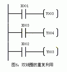 四,不宜使用雙線圈輸出。若在同一梯形圖中,同一組件的線圈使用兩次或兩次以上,則稱為雙線圈輸出或線圈的重復(fù)利用。雙線圈輸出一般梯形圖初學(xué)者容易犯的毛病之一。在雙線圈輸出時,只有最后一次的線圈才有效,而前面的線圈是無效的。這是由PLC的掃描特性所決定的。