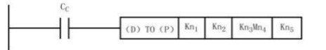 Kn3Mn4:源數(shù)據(jù)在PLC中的存儲(chǔ)地址。Kn3代表需要寫入的二進(jìn)制位數(shù),以4位(bit)為單位,如K4代表16位,允許輸入的值為K1~K8。Mn4代表源數(shù)據(jù)在三菱PLC中的存儲(chǔ)地址。源數(shù)據(jù)也可以是16位數(shù)據(jù)寄存器D(常用),此時(shí)就不需要前綴Kn3了。