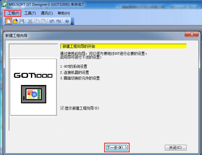 2.1.1單擊菜單欄【工程】→[新建][下一步]