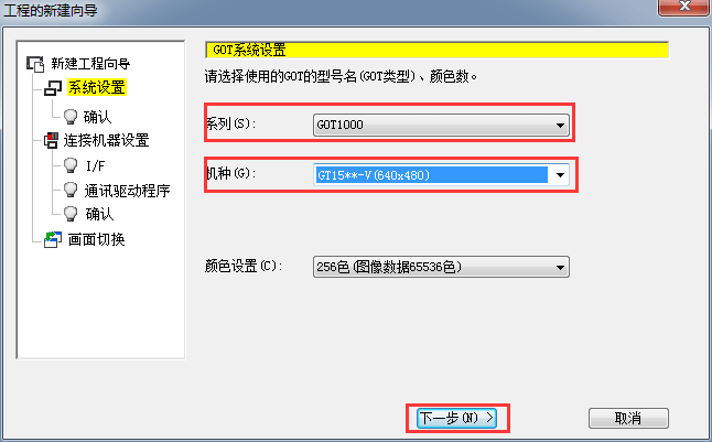 2.1.2選擇觸摸屏系列及機(jī)種類型,后單擊[下一步]