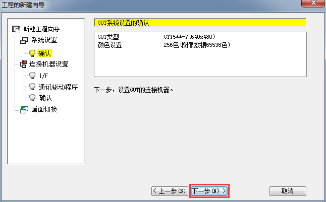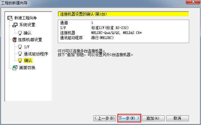 2.1.7 連接機(jī)器設(shè)置確認(rèn),確認(rèn)機(jī)種連接參數(shù)設(shè)置,單擊[下一步]
