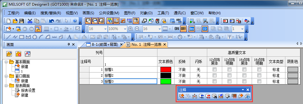 三菱觸摸屏如何添加報(bào)警注釋