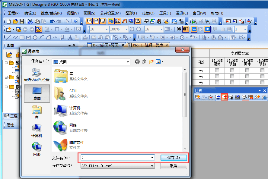 釋導(dǎo)出,可將已編輯好的注釋導(dǎo)出為注釋文件(*.CSV)。