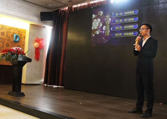 介紹完大會流程,那么接下來2017年海藍(lán)機(jī)電總結(jié)大會正式開始,首先由海藍(lán)機(jī)電的掌舵人朱總為我們致詞并就2017年工作成績進(jìn)行匯總為海藍(lán)家人指明我們2018年的航向。