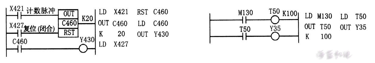 計(jì)數(shù)器輸出觸頭C460 接通,使輸出繼電器 Y430 得電。X427 閉合時(shí),C460 復(fù)位并斷開