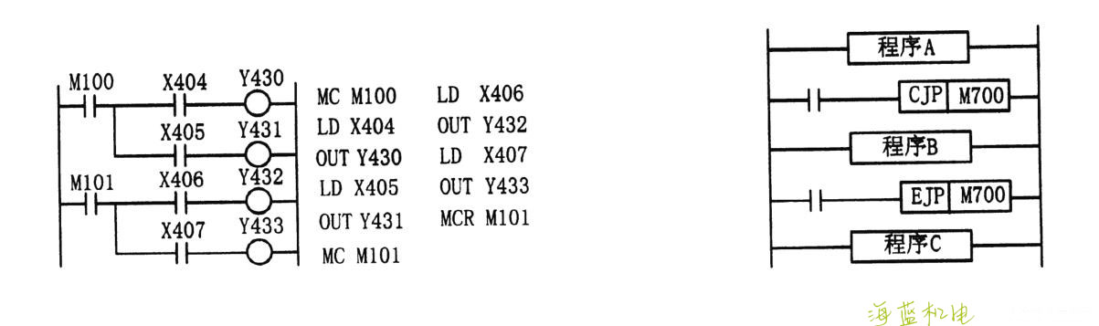 主控指令 MC 用于樹狀分支電路的分支起點(diǎn),相當(dāng)于通用計(jì)算機(jī)的調(diào)用子程序指