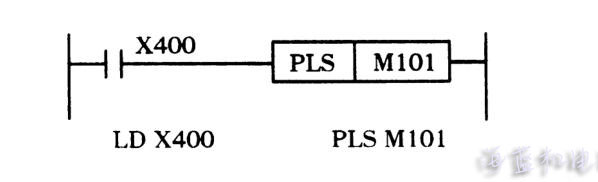 下圖為脈沖輸出梯形圖及指令。指令PLS 的作用是將脈沖寬度較寬的輸入信號(hào)