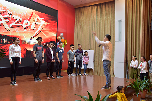 經過一個約摸小時的精心布置,會場一片喜慶洋洋的氣氛,在這里要夸夸會場布置的小伙伴,小手兒啊真巧。九點時分,現(xiàn)場已是座無虛席,很是熱鬧。突然,音樂響起了歡快的音樂,只見我們主持人邁著優(yōu)雅的步伐緩緩地走上舞臺,用她那鏗鏘有力的聲音宣布:“海藍機電2019年年會正式開始”。